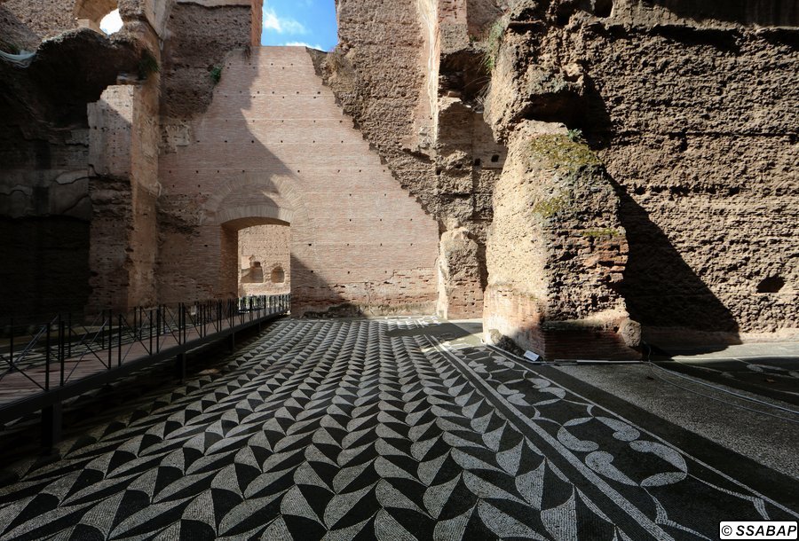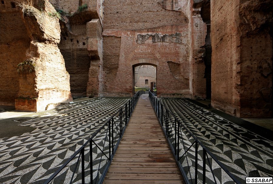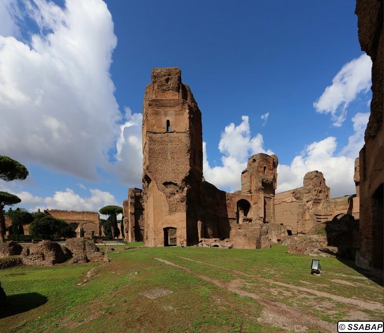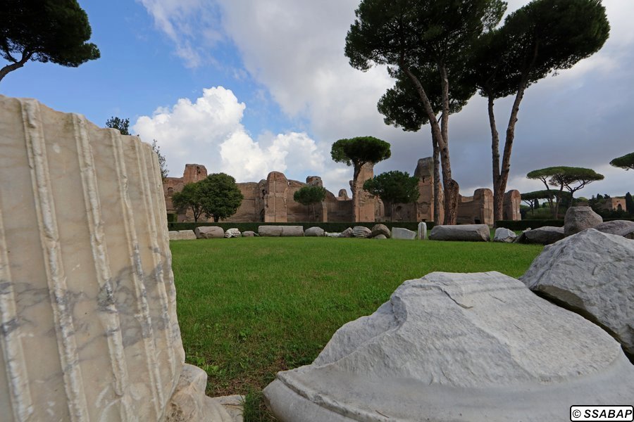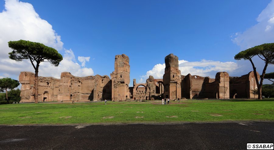 Le Terme di Caracalla sono un complesso straordinario per dimensioni e varietà di decorazioni, musive e marmoree. Costruite in soli cinque anni nella parte meridionale della città di Roma su tre terrazze digradanti, servite dall’acquedotto Antoniniano appositamente realizzato, raggiunte dalla via Nova, rappresentano uno degli edifici imperiali meglio conservati dell’antichità perché non interessate da costruzioni successive. Le Terme furono costruite su iniziativa dell’imperatore Marco Aurelio Antonino Bassiano, detto Caracalla, figlio di Settimio Severo, che inaugurò l’edificio nel 216 d.C., ma il cantiere si prolungò fin dopo la sua morte (217 d.C.), e fu terminato con gli ultimi imperatori della dinastia, Elagabalo e Alessandro Severo. Restaurato più volte, soprattutto dall’imperatore Costantino, l’impianto termale cessò di funzionare nel 537 d.C. quando, nel corso della guerra greco-gotica, Vitige, re dei Goti, tagliò gli acquedotti durante l’assedio di Roma.