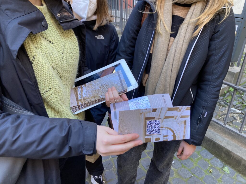 Alla fine del percorso gli studenti hanno tenuto una presentazione sul posto di fronte a compagni e professori, arricchendola con materiale divulgativo prodotto dai loro gruppi di lavoro, come brochures, QR codes, powerpoints, siti internet con approfondimenti, immagini storiche e ricostruttive.